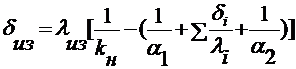 Толщину слоя теплоизоляции dиз, м, определяют по формуле
