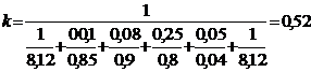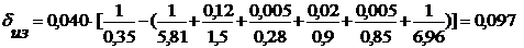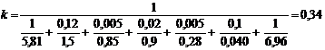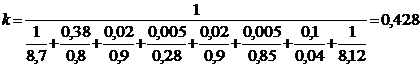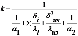Для принятой окончательно толщины слоя теплоизоляции d 'из производят уточнение величины коэффициента теплопередачи, который будет использован в дальнейших расчетах и является действительным.