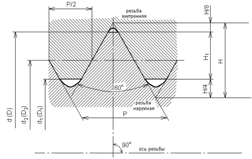 . Расчет геометрических параметров резьбового соединения с метрической резьбой