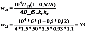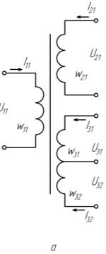 где: р=1 - без вывода первичной обмотки трансформатора; l=1,2,…L - количество вторичных обмоток с выводом средней точки; k=1,2,…K - количество вторичных обмоток без выводов; w21, w3l, w11 - число витков обмоток.