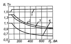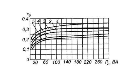 от выходной мощности трансформатора; 2-для трансформаторов с броневым
