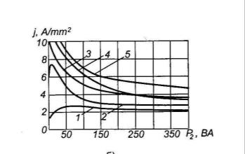 тока в проводах обмоток, А/мм2;