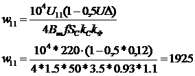 число витков первичной обмотки трансформатора: