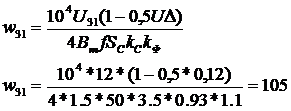 число витков вторичной обмотки трансформатора:
