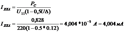 Рассчитаем активную составляющую тока холостого хода:
