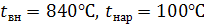 поверхности футеровки равна 840