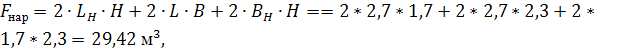 площадь наружной поверхности печи.