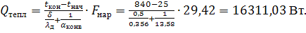 Потери тепла теплопроводностью через кладку печи