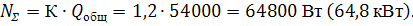 Мощность печи вычисляем по формуле: