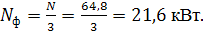 приходящаяся на одну фазу, составит