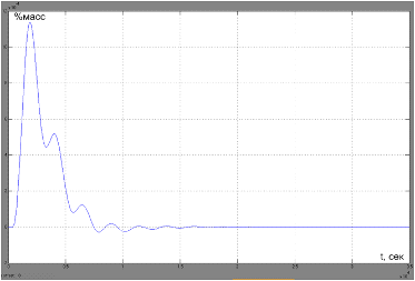 Оценим качество переходного процесса в основном канале регулирования по возмущению при найденных оптимальных настройках регуляторов и при заданной структуре каскадной АСР.