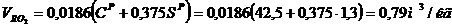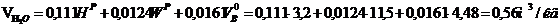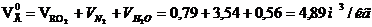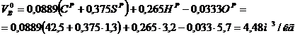 Теоретический объем сгорания продуктов: