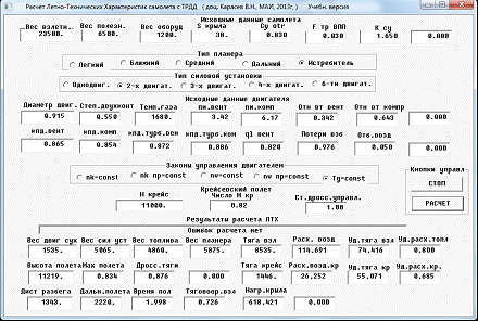 Рис.3 Расчет ЛТХ самолета с ТРДД (МиГ-35)