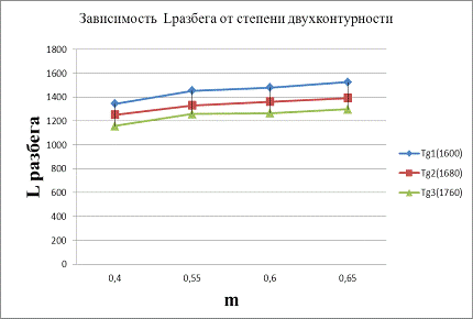 Рис.4 L разбега=f(m)