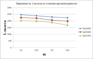 Рис.6 L полета=f(m)