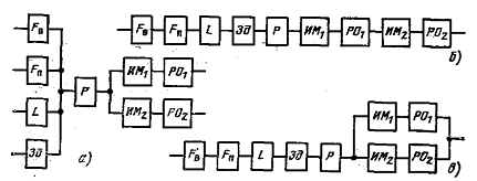 (рис. 1, а) или параллельно (рис. 1, б) в зависимости от их влияния на