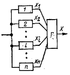 работает нечетное число элементов, их выходные сигналы х1, х2,...,