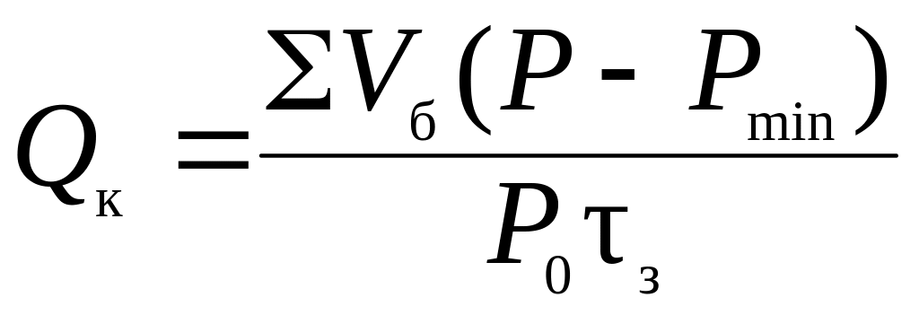 Если в установке имеется больше двух компрессоров, их суммарная подача должна быть достаточной для заполнения в течение 0,5 ч всех баллонов от Pmin до начального рабочего Р.