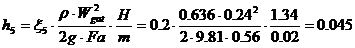 Потери при внезапном расширении газа на входе: