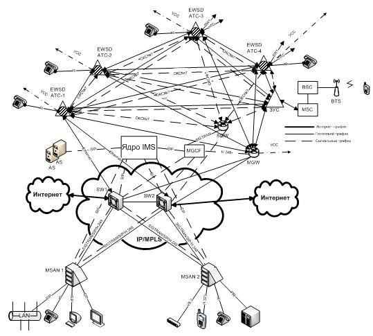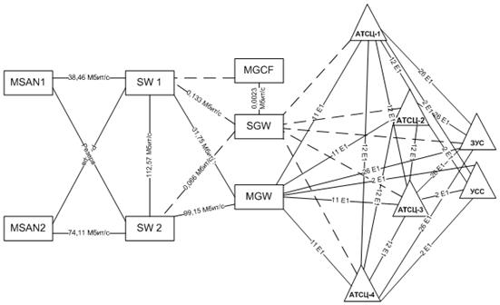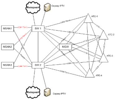 Рис. 2.1 Схема ГТС и проектируемого участка мультисервисной сети