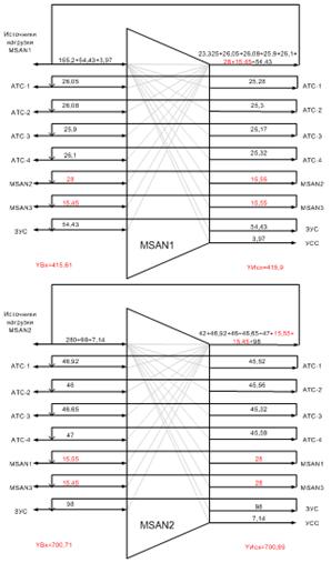 Число УПАТС/ число потоков E1от каждой, подключенных к MSAN2  -4/3