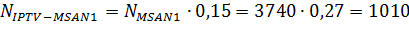Количество пользователей, подключенных к услуге IPTV, для АТС-1 составит 7% от общего числа абонентов: