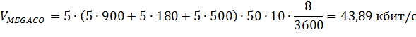 Кроме того, для нагрузки, поступающей со стороны сети с КК, необходимо учитывать сообщения протокола управления медиашлюзами H.248/Megaco. Приближенно будем считать, что сигнальная информация H.248 требует дополнительно 4% транспортного ресурса от общего транспортного ресурса медиашлюза.
