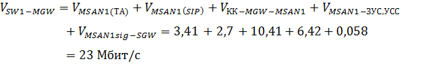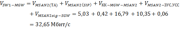сети с КК на участке сети SW1 - MGW: