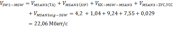 сети с КК на участке сети SW2 - MGW: