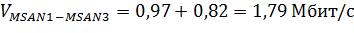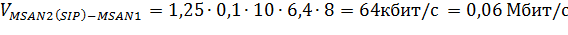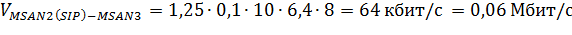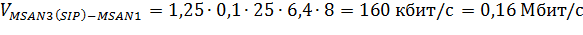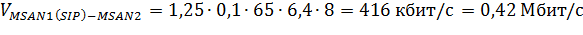 информации между MSAN с учетом сигнальной нагрузки (20% от общей сигнальной