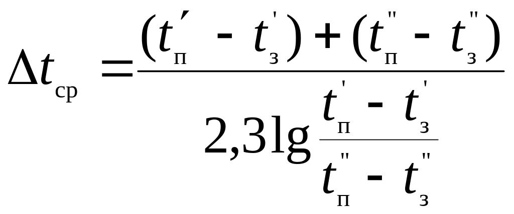 где k - коэффициент теплопередачи, который составляет для холодильника без турбулизаторов: трубчатый с d = 10…15 мм k = 1,4 кВт/м2∙К, трубчатый с d < 10 мм k = 3 кВт/м2∙К; с турбулизаторами в круглых трубках или плоскими трубками k ≤ 4,7 кВт/м2 ∙К; Δtср- средняя логарифмическая разность температур: