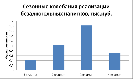 Среднеквартальный уровень реализации безалкогольных напитков повышается, что говорит об общейтенденции роста реализации.