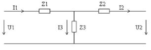 преобразуем П-схему четырёхполюсника в эквивалентную ей звезду: