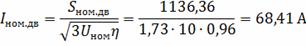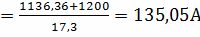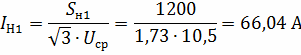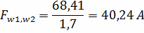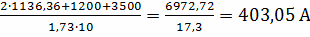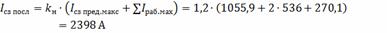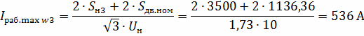 Максимальный рабочий ток линий W1, W2 в послеаварийном режиме: