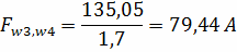 Максимальный рабочий ток линий W3, W4 в послеаварийном режиме: