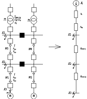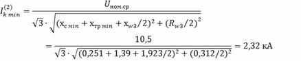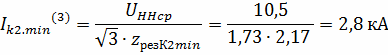 - двухфазное КЗ на стороне НН, приведенное к стороне ВН.
