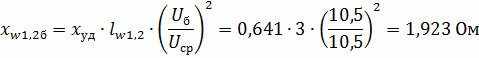 Линия w1, w2, кабель 3х50 - X0 = 0,641 Ом/км.