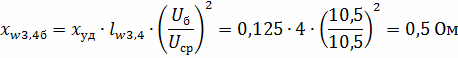 Линия w3, w4, кабель 3х240 - X0 =0,125 Ом/км.