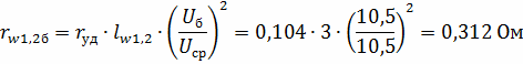 Линия w1, w2, кабель 3х50 - R0 = 0,104 Ом/км