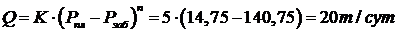 жидкости по уравнению притока при показателе, фильтрации n = 1.