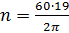 где ω = 19 - угловая скорость.