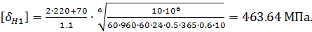 Допускаемые напряжения для шестерни: