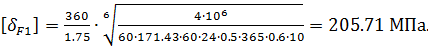 Допускаемое напряжение зубьев шестерни: