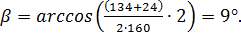 Угол наклона β, выбирается из диапазона от 8 до 18°.