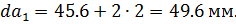 Диаметры вершин зубьев: