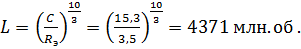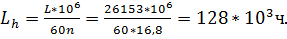 где - Рr3 = 2397 H - радиальная нагрузка; V = 1 (вращается внутреннее кольцо подшипника); коэффициент безопасности Кб = 1,3; температурный коэффициент Кt = 1.