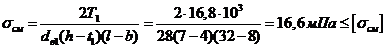 где Т - вращающий момент на валу;- высота шпонки;1 - глубина паза;- общая длина шпонки;- ширина шпонки;