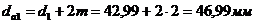 Диаметры окружностей вершин зубьев: