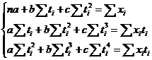 параметров уравнения тренда для квадратичной параболы которая имеет вид: