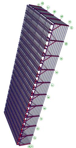 Прочность и устойчивость здания обеспечивается при помощи жесткого закрепления стоек к фундаменту и раскрепления ригелей и подкосов в продольном направлении в вертикальных плоскостях и работы плиты покрытия в поперечном направлении и связей в продольном направлении между ребрами плиты покрытия в горизонтальной плоскости.